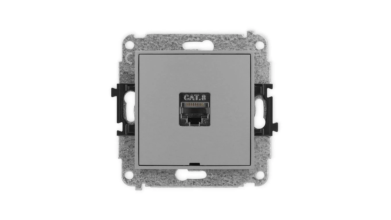 ICON Mechanizm gniazda komputerowego pojedynczego 1xRJ45, kat. 8, ekranowane, 8-stykowy, bez pola opisowego szary mat 27IGKBO-11