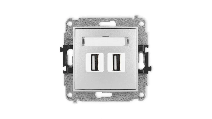 ICON Mechanizm gniazda podwójnego 2xUSB A-A 2.0 srebrny metalik 7IGUSB-2