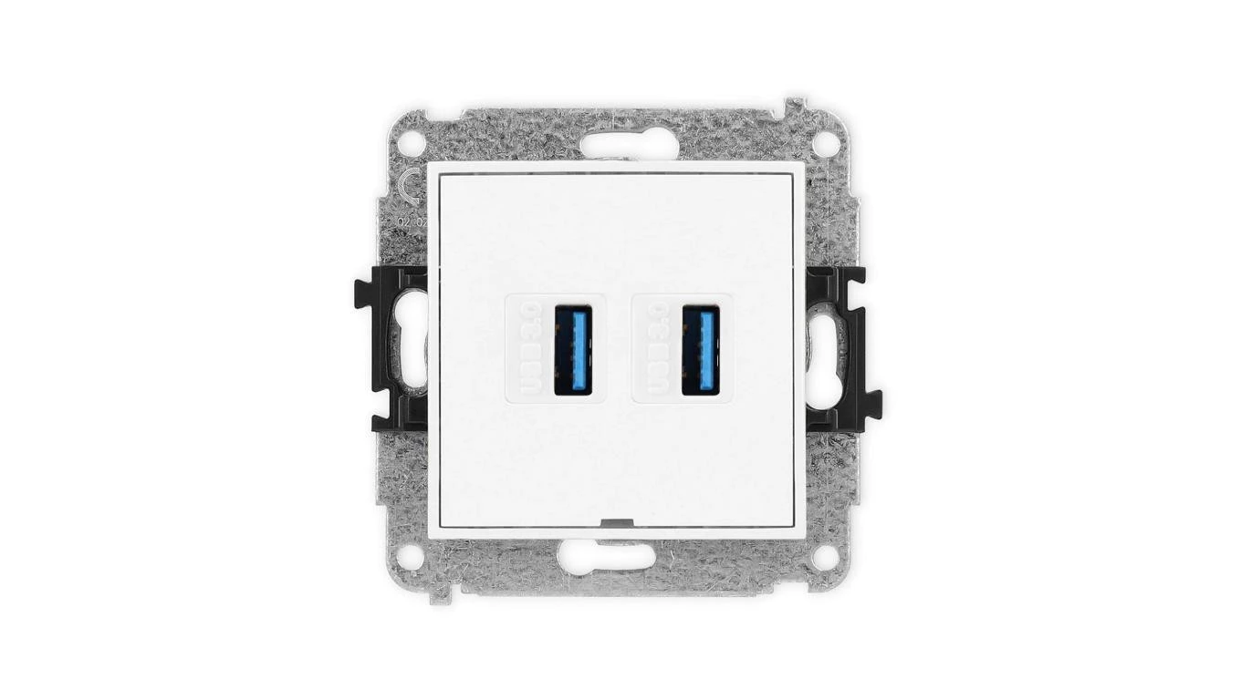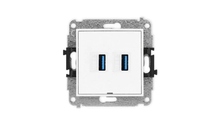 ICON Mechanizm gniazda podwójnego 2xUSB A-A 3.0, bez pola opisowego biały mat 25IGUSBBO-6