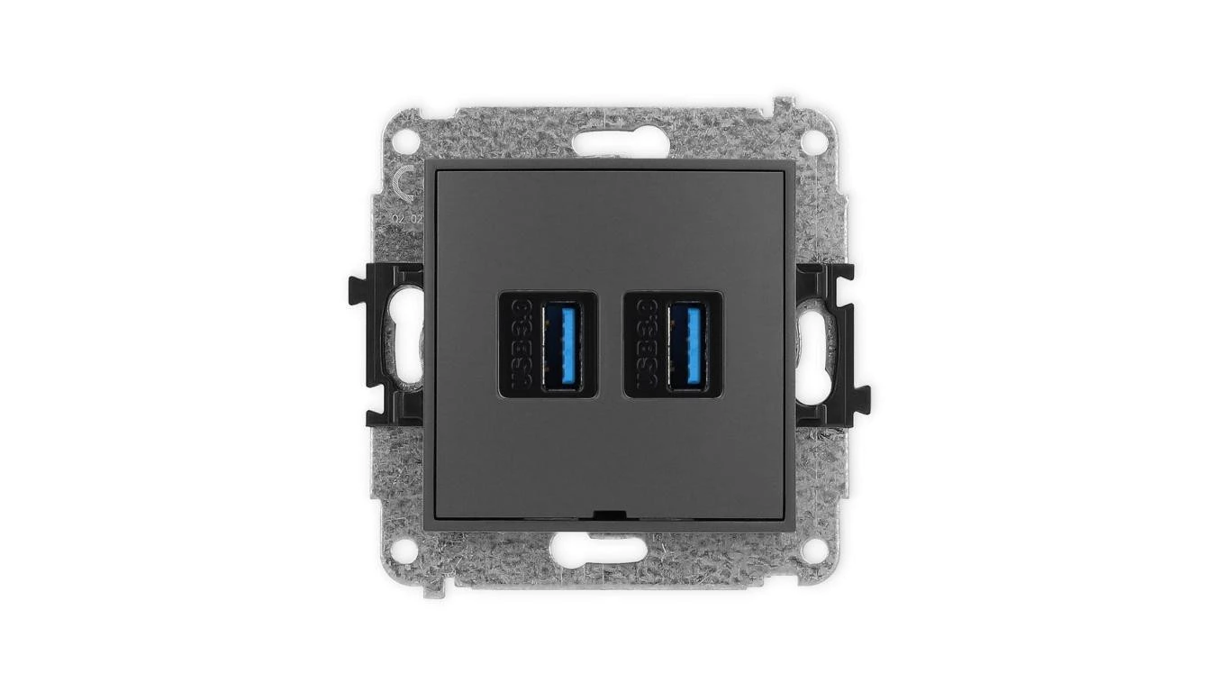 ICON Mechanizm gniazda podwójnego 2xUSB A-A 3.0, bez pola opisowego grafitowy mat 28IGUSBBO-6