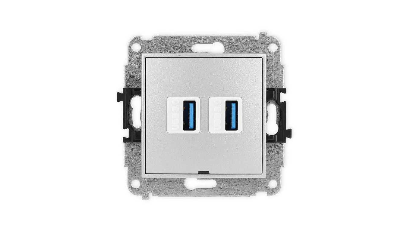 ICON Mechanizm gniazda podwójnego 2xUSB A-A 3.0, bez pola opisowego srebrny metalik 7IGUSBBO-6