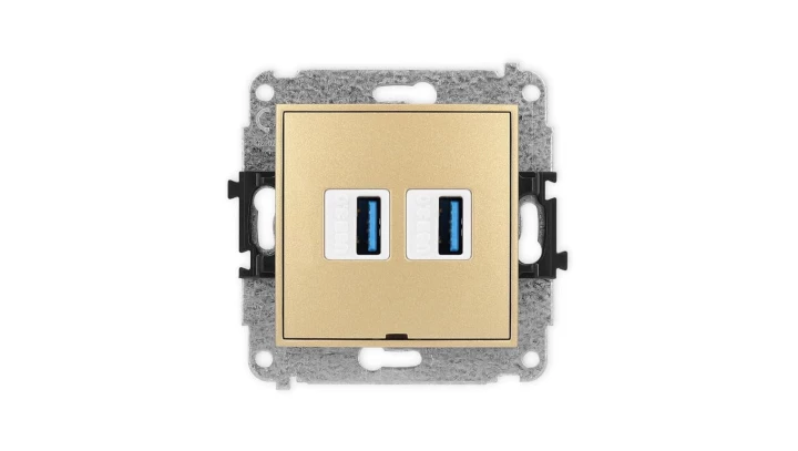 ICON Mechanizm gniazda podwójnego 2xUSB A-A 3.0, bez pola opisowego złoty 29IGUSBBO-6