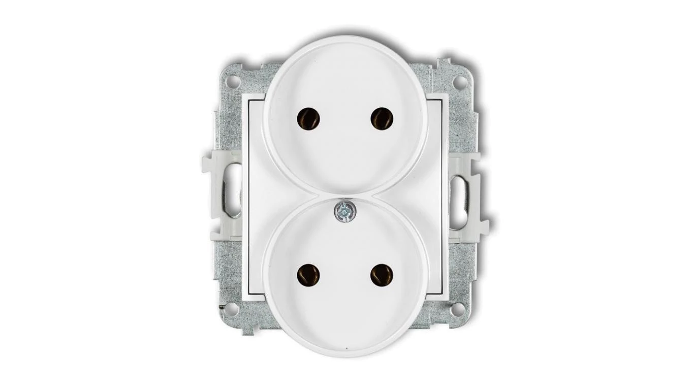 ICON Mechanizm gniazda podwójnego do ramki bez uziemienia 2x2P (bez przesłon torów prądowych) biały mat 25IGPR-2