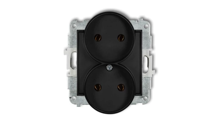 ICON Mechanizm gniazda podwójnego do ramki bez uziemienia 2x2P (bez przesłon torów prądowych) czarny mat 12IGPR-2