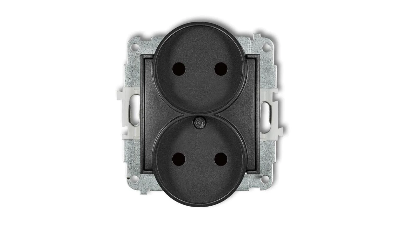 ICON Mechanizm gniazda podwójnego do ramki bez uziemienia 2x2P (przesłony torów prądowych) grafitowy 11IGPR-2p