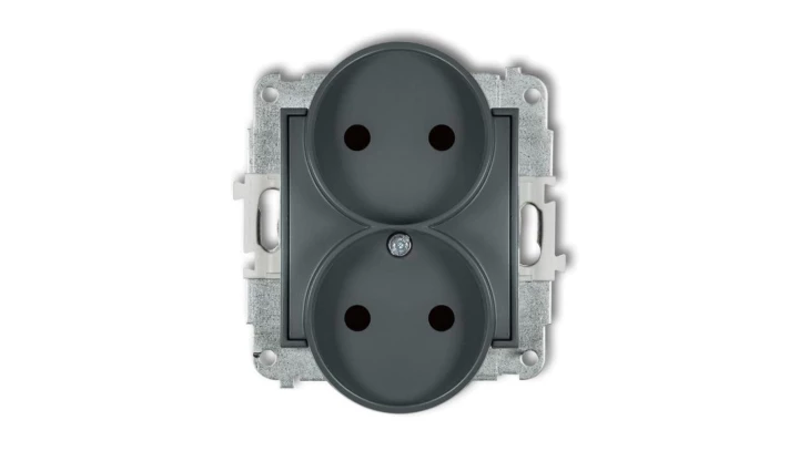 ICON Mechanizm gniazda podwójnego do ramki bez uziemienia 2x2P (przesłony torów prądowych) grafitowy mat 28IGPR-2p