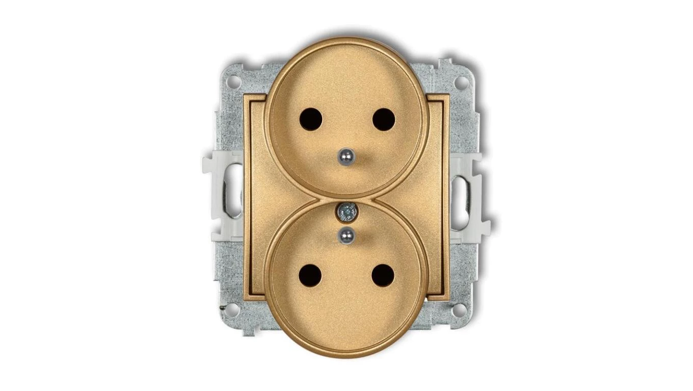 ICON Mechanizm gniazda podwójnego do ramki z uziemieniem 2x(2P+Z) (przesłony torów prądowych) złoty 29IGPR-2zp