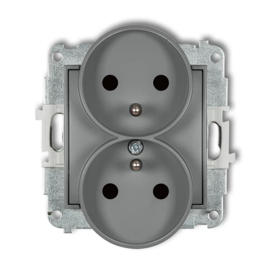 ICON Mechanizm gniazda podwójnego do ramki z uziemieniem 2x(2P+Z) (przesłony torów prądowych) szary mat 27IGPR-2zp