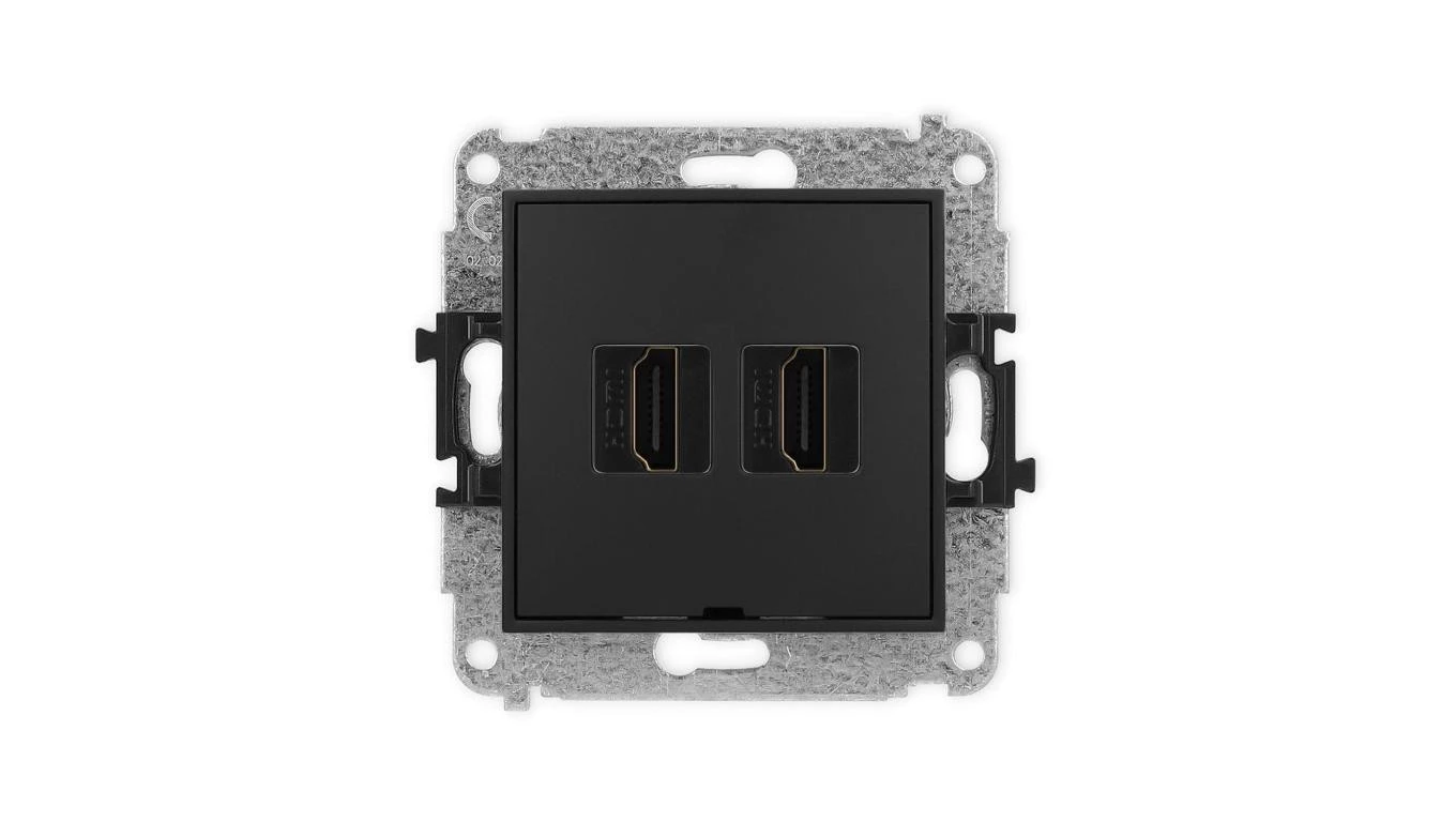 ICON Mechanizm gniazda podwójnego HDMI 2.0, bez pola opisowego czarny mat 12IHDMIBO-4