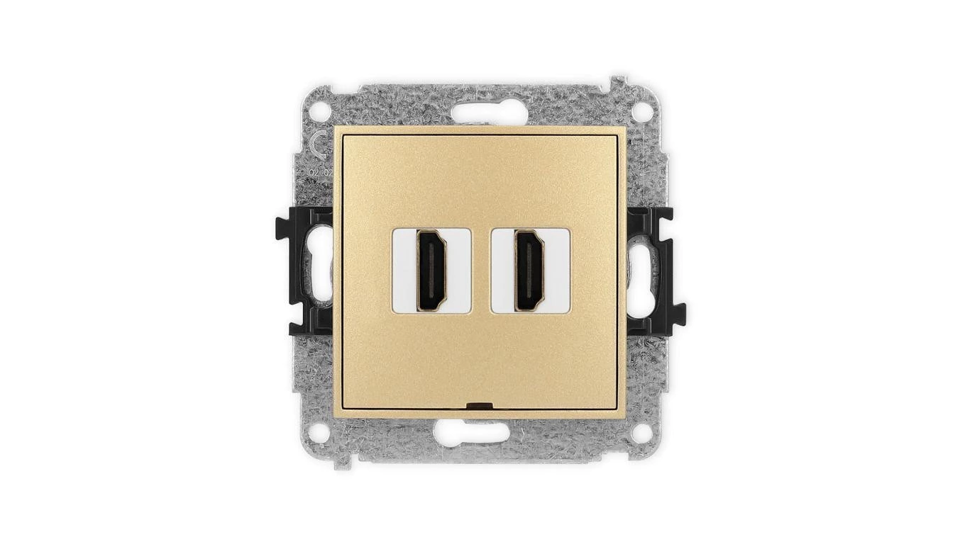 ICON Mechanizm gniazda podwójnego HDMI 2.0, bez pola opisowego złoty 29IHDMIBO-4