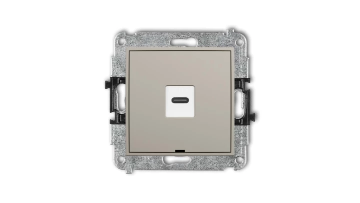 ICON Mechanizm gniazda pojedynczego 1xUSB C-C, bez pola opisowego taupe 60IGUSBBO-7