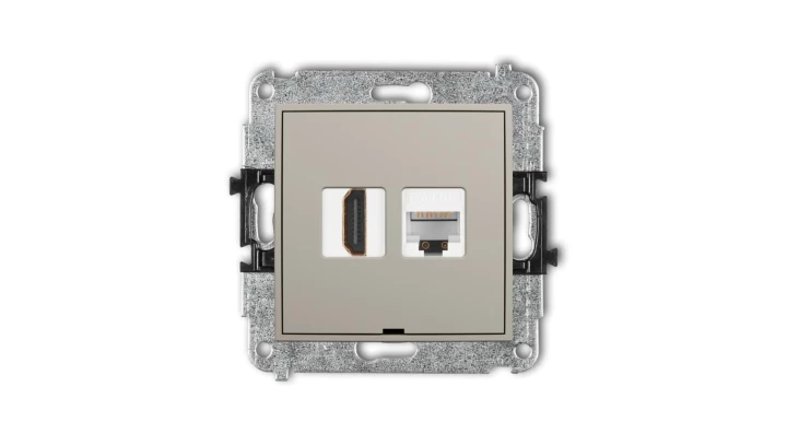 ICON Mechanizm gniazda pojedynczego HDMI 2.0, 4K + gniazda komp. poj. 1xRJ45, kat. 5e, 8-stykowy, bez opisu taupe 60IGHKBO