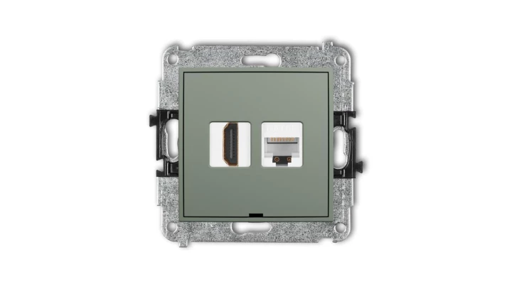 ICON Mechanizm gniazda pojedynczego HDMI 2.0, 4K + gniazda komp. poj. 1xRJ45, kat. 5e, 8-stykowy, bez opisu szałwiowy 61IGHKBO