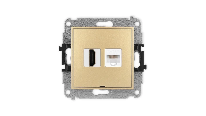 ICON Mechanizm gniazda pojedynczego HDMI 2.0 + gniazda komp. poj. 1xRJ45, kat. 5e, 8-stykowy, bez pola opisowego złoty 29IGHKBO