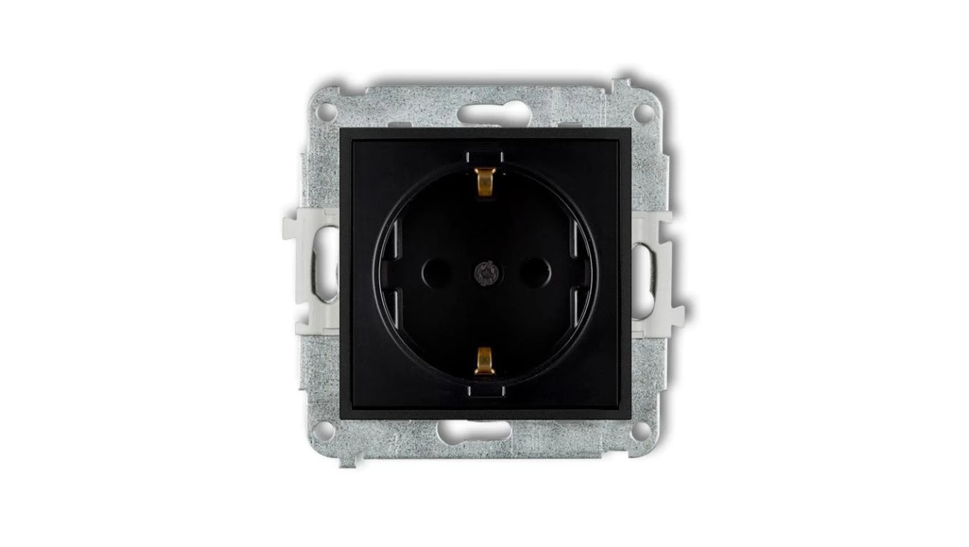 ICON Mechanizm gniazda pojedynczego z uziemieniem SCHUKO 2P+Z (przesłony torów prądowych) czarny mat 12IGP-1sp