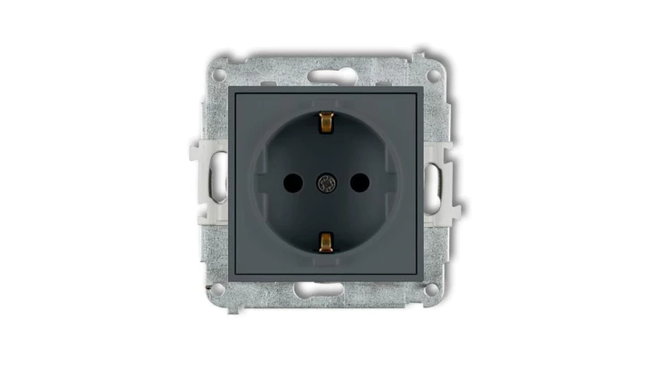 Simon 54 Gniazdo pojedyncze SCHUKO z/u 16A IP20 z przesłoną torów, szybkozłącza, antracyt DGSz1CZ.01/48