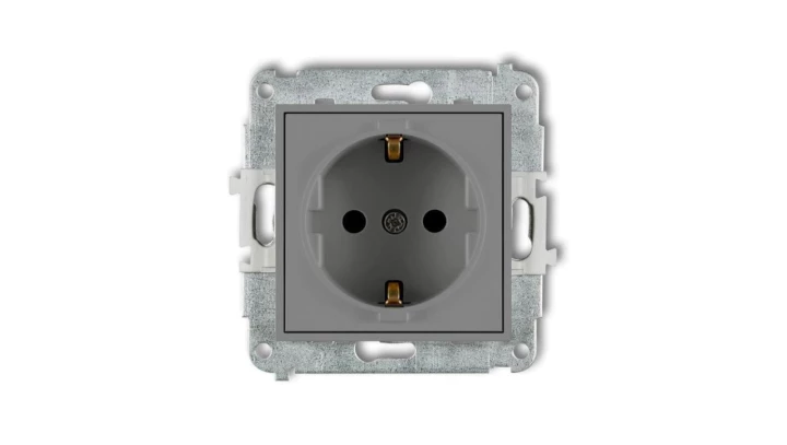 ICON Mechanizm gniazda pojedynczego z uziemieniem SCHUKO 2P+Z (przesłony torów prądowych) szary mat 27IGP-1sp