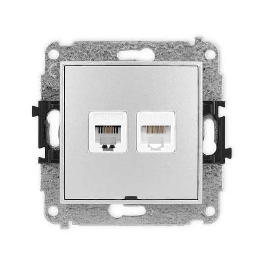 ICON Mechanizm gniazda telefonicznego 1xRJ11 + komp. 1xRJ45, kat. 5e, 8-styk, beznarzędziowe, bez opisu srebrny metalik 7IGTKBO