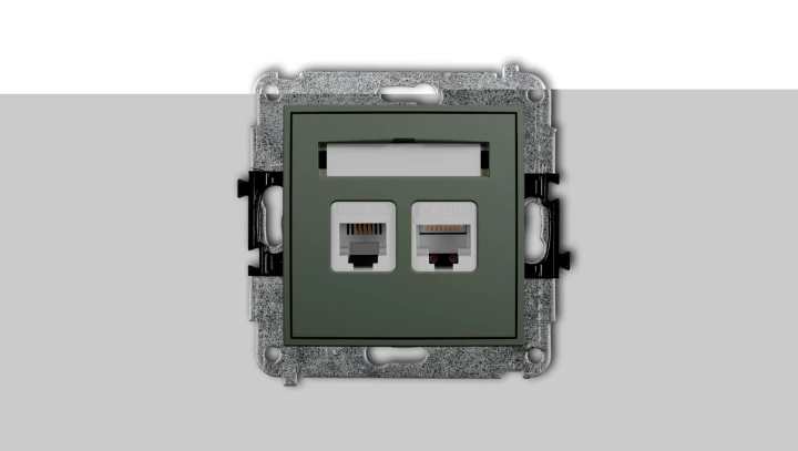 ICON Mechanizm gniazda telefonicznego 1xRJ11 + komputerowego poj. 1xRJ45, kat. 5e, 8-stykowy, beznarzędziowe szałwiowy 61IGTK