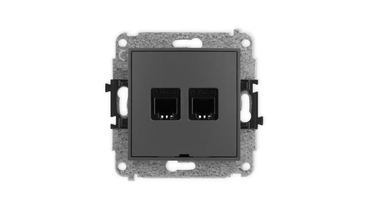 ICON Mechanizm gniazda telefonicznego podwójnego 2xRJ11, 4-stykowy, beznarzędziowe, bez pola opisowego grafitowy mat 28IGTBO-2