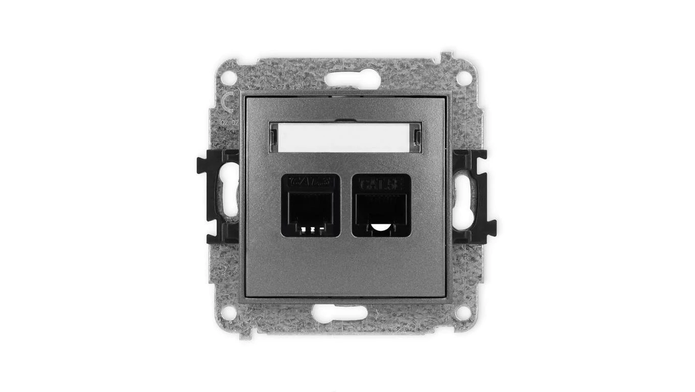ICON Mechanizm gniazda telefonicznego poj. 1xRJ11 + komputerowego poj. 1xRJ45, kat. 5e, 8-styk, beznarzędziowe grafitowy 11IGTK
