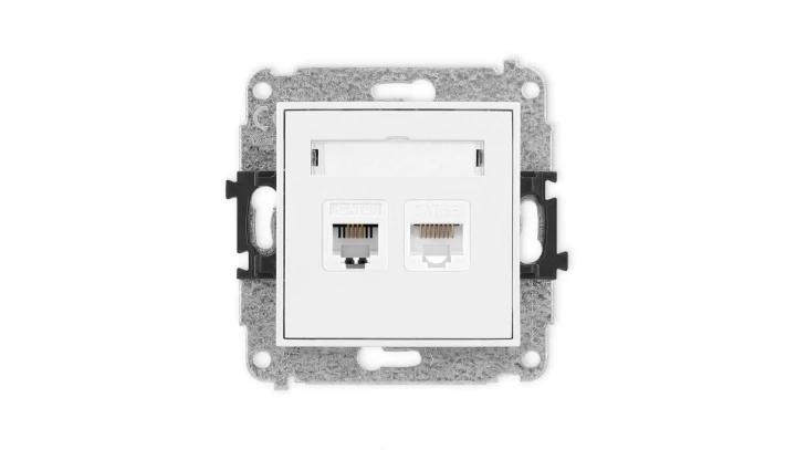 ICON Mechanizm gniazda telefonicznego poj. 1xRJ11 + komputerowego poj. 1xRJ45, kat. 5e, 8-styk, beznarzędziowe biały mat 25IGTK