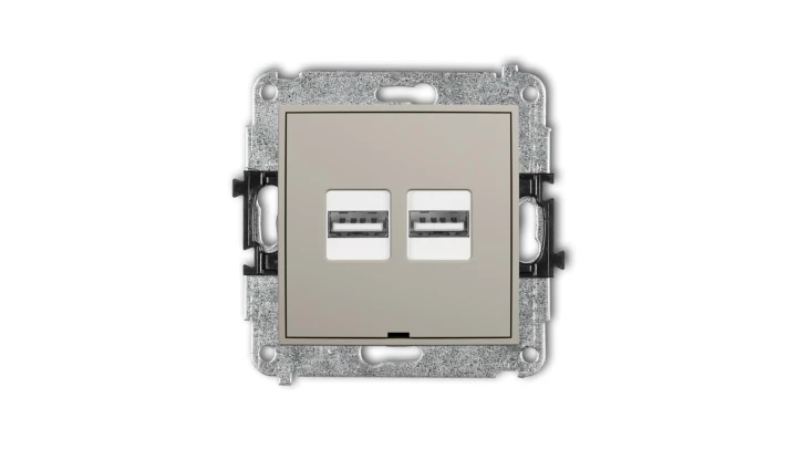 ICON Mechanizm ładowarki USB podwójnej 2xUSB A, 15,5W max., 5V, 3.1A, bez pola opisowego taupe 60ICUSBBO-6