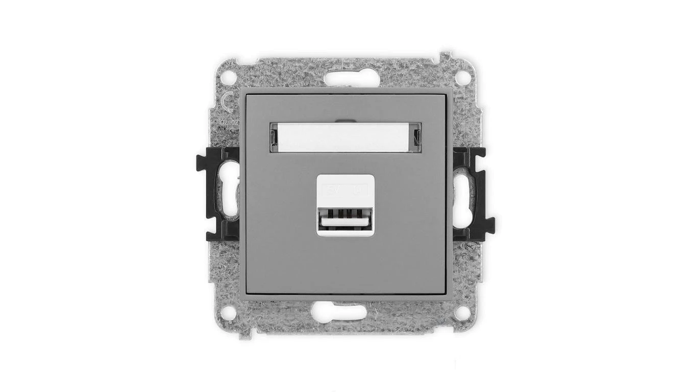 ICON Mechanizm ładowarki USB pojedynczej, 5V, 1A grafitowy 11ICUSB-1