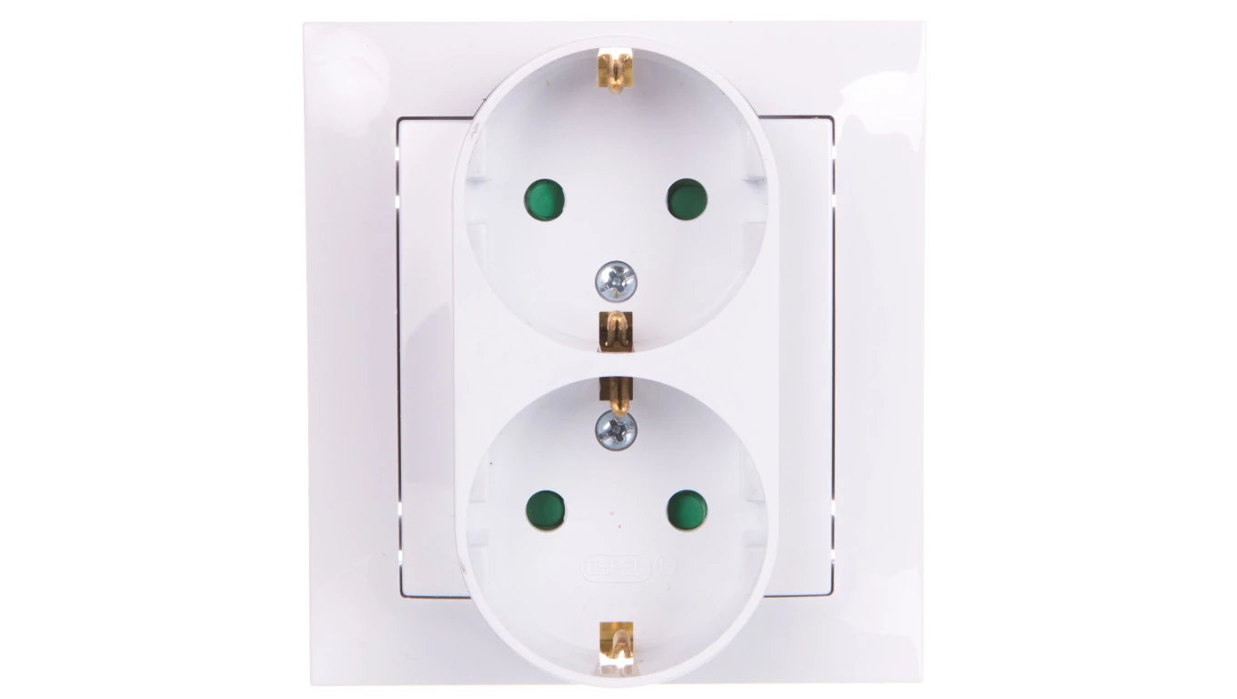 IMPRESJA BIAŁY GNIAZDO 2X SCHUKO Z PRZESŁONAMI ZACISKI ŚRUBOWE 16A 250V