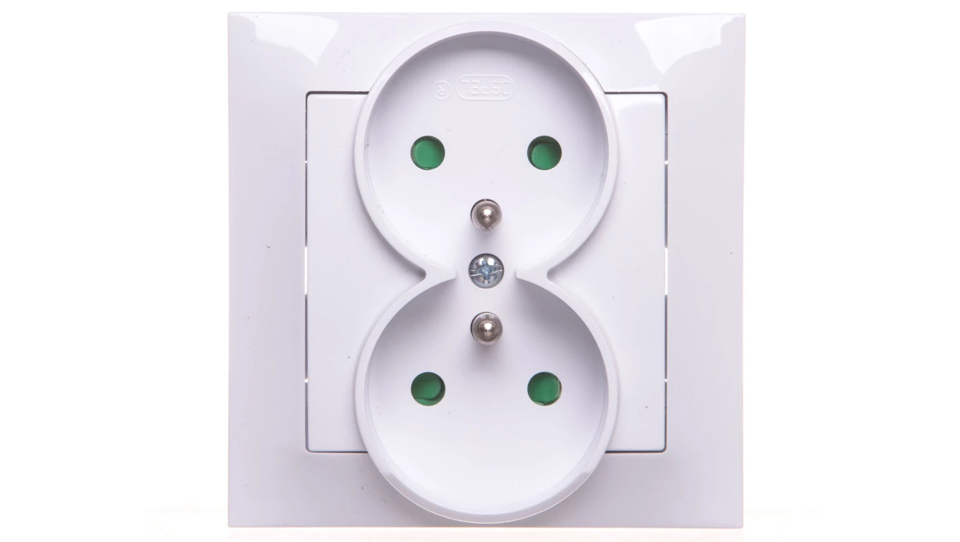 IMPRESJA BIAŁY GNIAZDO 2X Z/U Z PRZESŁONAMI ZACISKI ŚRUBOWE 16A 250V