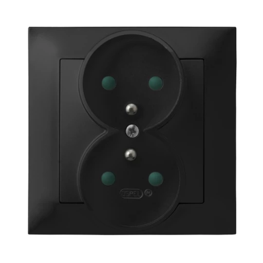 IMPRESJA CZARNY METALIK GNIAZDO 2X Z/U Z PRZESŁONAMI ZACISKI ŚRUBOWE 16A 250V