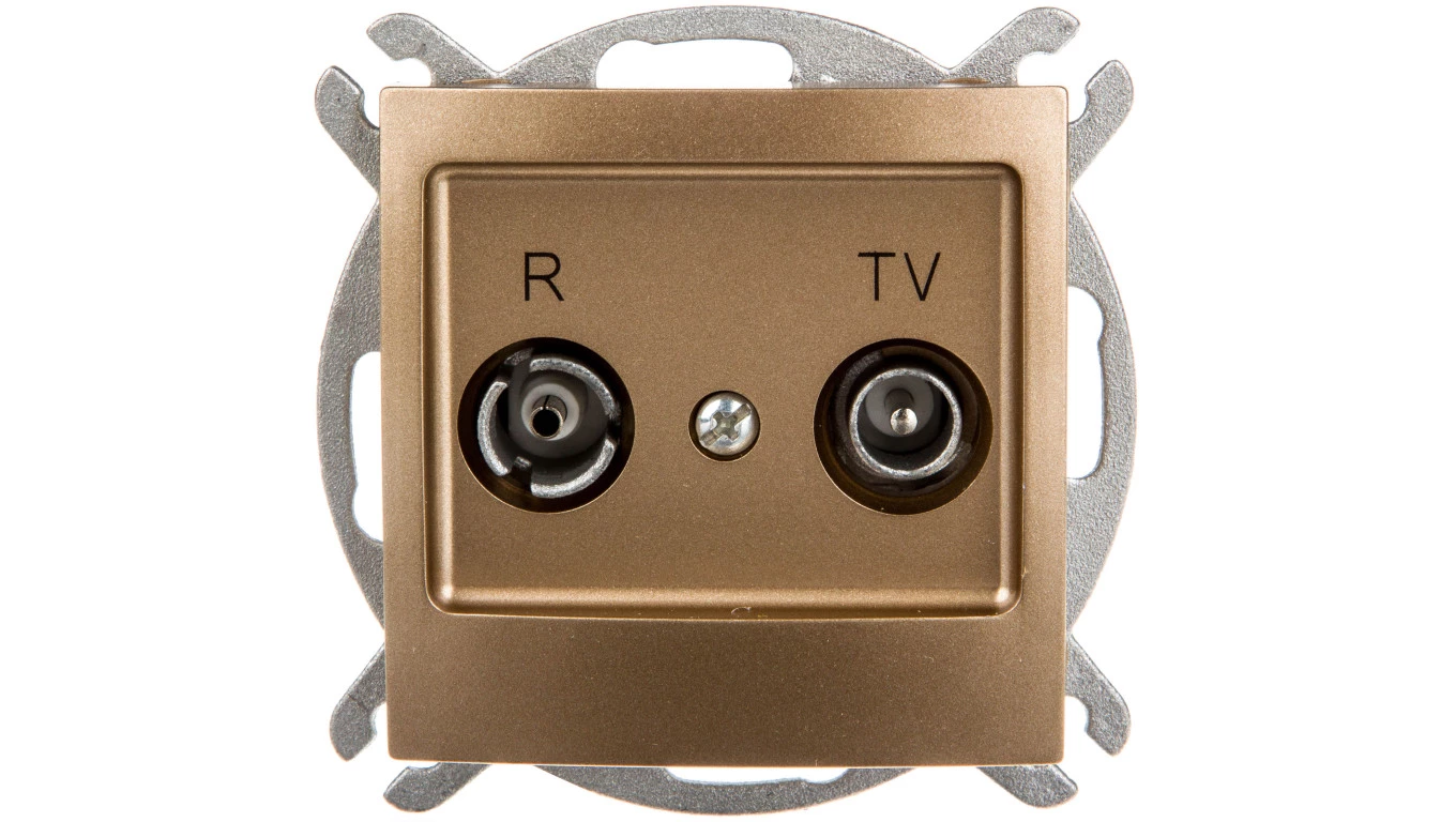 IMPRESJA Gniazdo antenowe RTV przelotowe 14dB złoty metalik GPA-14YP/m/28