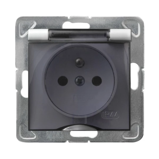 Simon 54 Gniazdo bryzgoszczelne z/u IP44 z klapką transparentną antracyt DGZ1BZ.01/48A