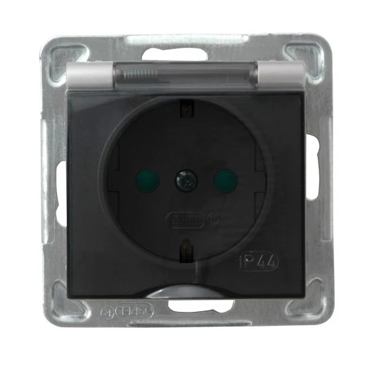 Simon 54 Gniazdo bryzgoszczelne z/u IP44 z klapką transparentną antracyt DGZ1BZ.01/48A