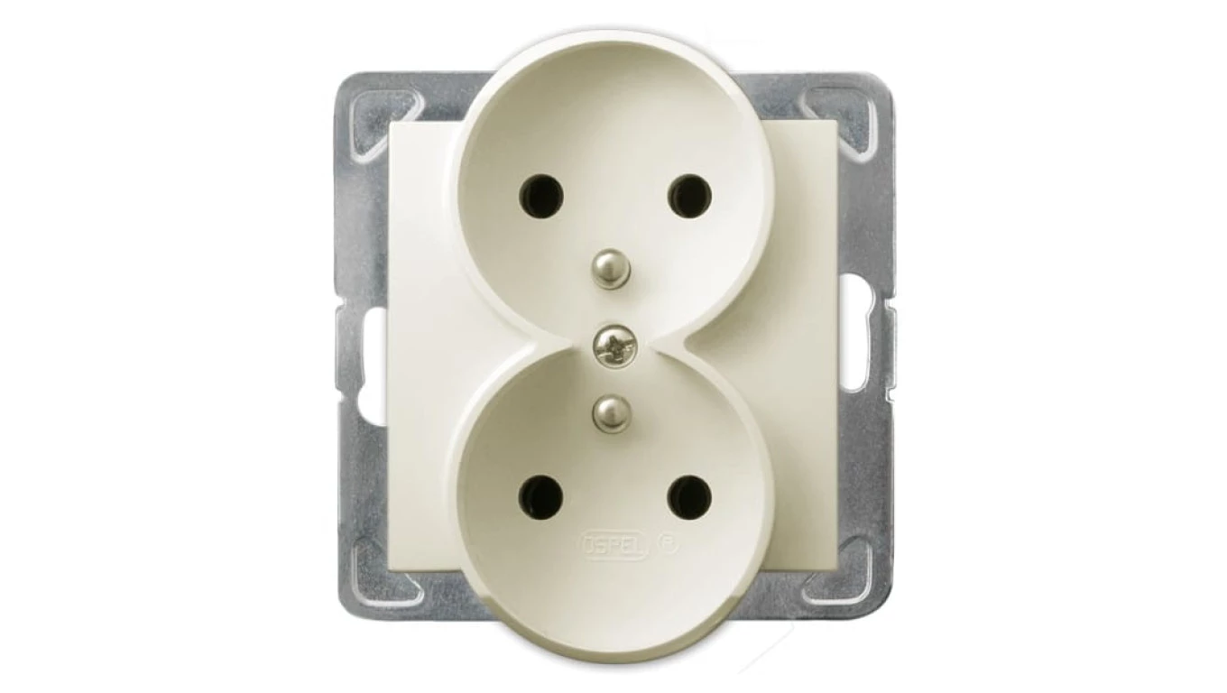 AS Gniazdo podwójne z/u z przesłonami ecru GP-2GRZP/m/27