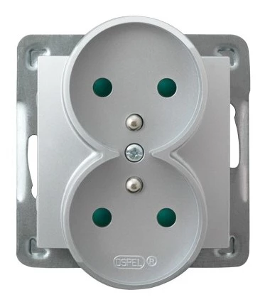 IMPRESJA MODUŁ SREBRNY GNIAZDO 2X Z/U ZACISKI ŚRUBOWE 16A 250V