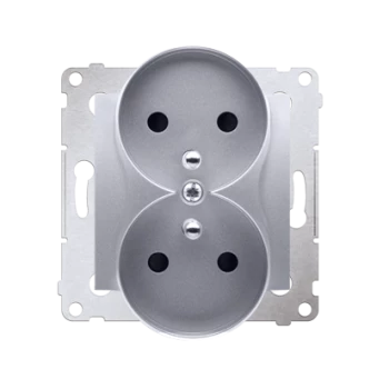 Simon 54 Gniazdo podwójne z/u 16A IP20 z przesłoną torów srebrny mat DGZ2MZ.01/43