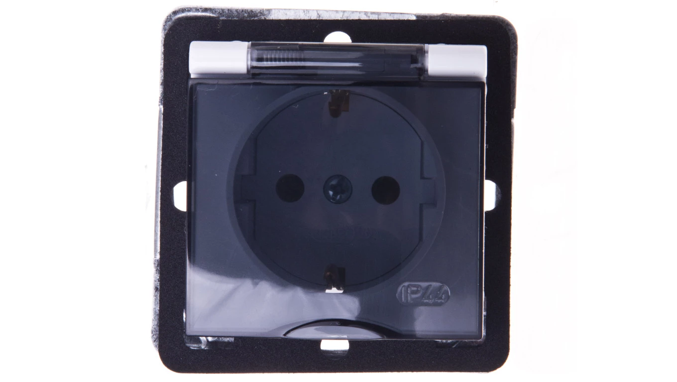 Simon 54 Gniazdo bryzgoszczelne z/u IP44 z klapką transparentną antracyt DGZ1BZ.01/48A