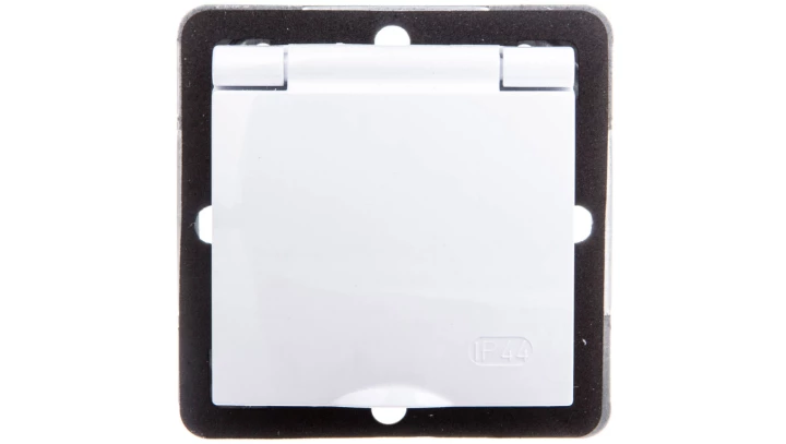 IMPRESJA MODUŁ BIAŁY GNIAZDO 1X Z/U Z KLAPKĄ BIAŁĄ IP44 Z PRZESŁONAMI ZACISKI ŚRUBOWE 16A 250V