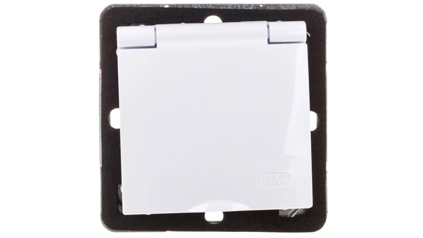 IMPRESJA MODUŁ BIAŁY GNIAZDO 1X Z/U Z KLAPKĄ BIAŁĄ IP44 ZACISKI ŚRUBOWE 16A 250V