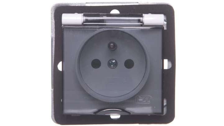 Simon 54 Gniazdo bryzgoszczelne z/u IP44 z klapką transparentną antracyt DGZ1BZ.01/48A