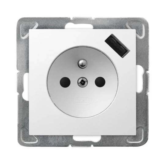 IMPRESJA MODUŁ BIAŁY GNIAZDO 1X Z/U Z PRZESŁONAMI ZACISKI SPRĘŻYNOWE + ŁADOWARKA USB 16A 250V