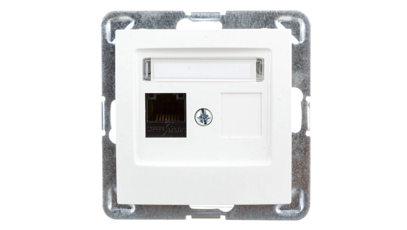 Simon 54 Gniazdo komputerowe pojedyncze RJ45 kat.6 z przesłoną białe D61.01/11