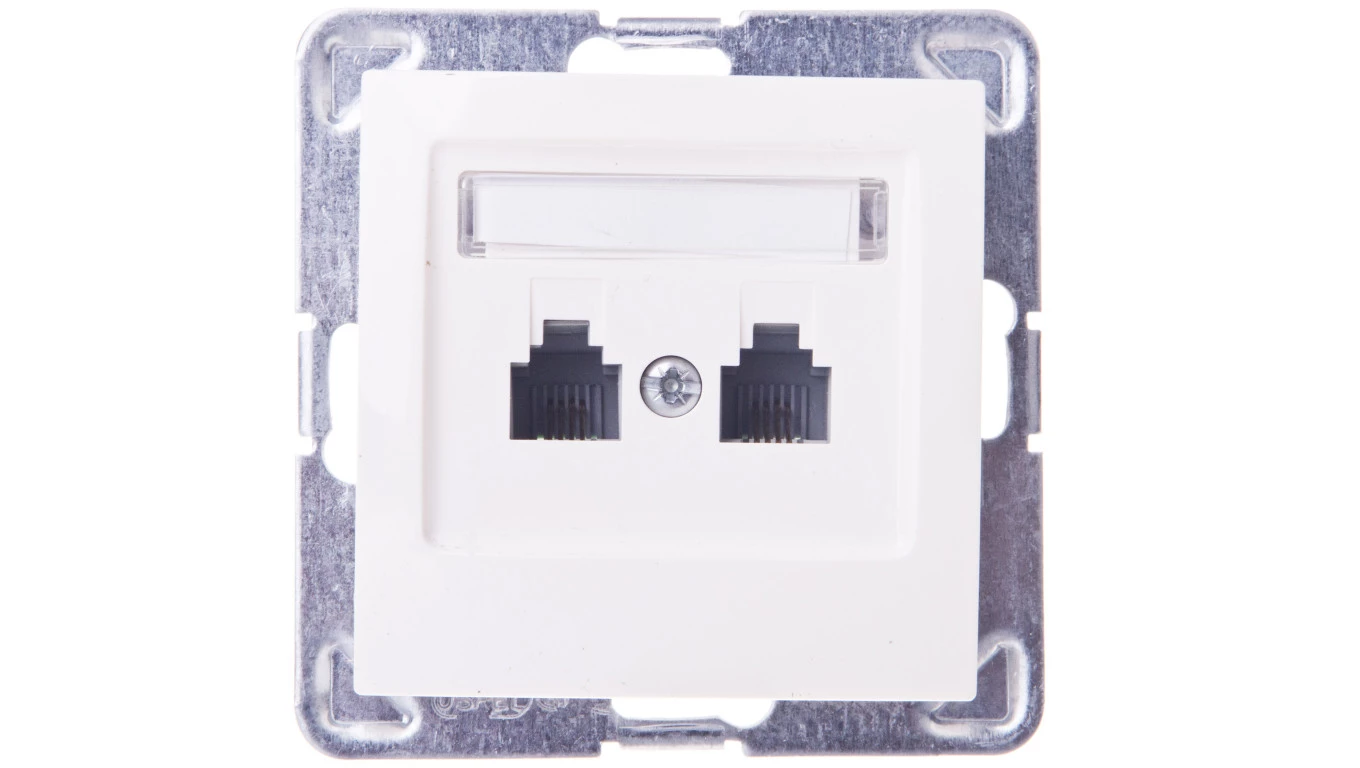 Simon 54 Gniazdo komputerowe podwójne 2xRJ45 kat.6 z przesłoną białe D62.01/11