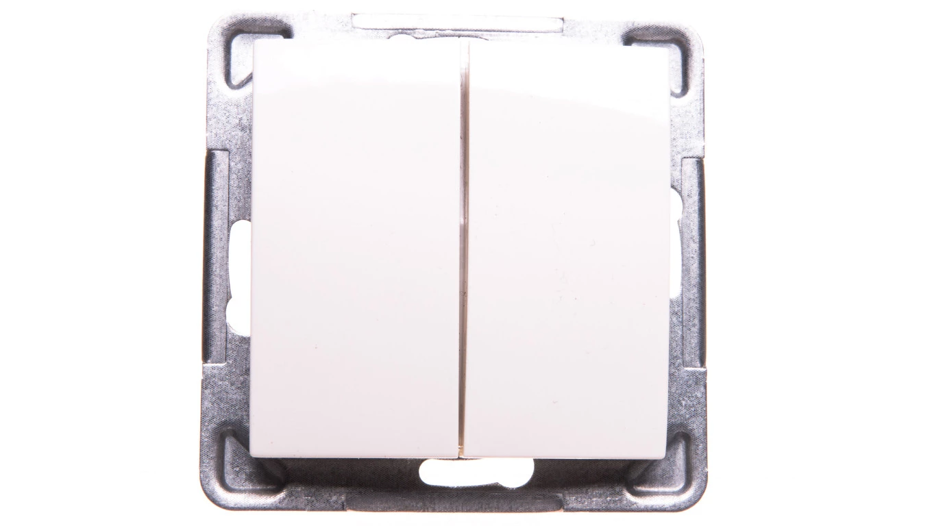 Łącznik dwugrupowy świecznikowy - ECRU IMPRESJA o numerze katalogowym   ŁP-2Y/M/27 w kategorii Łączniki wielobiegunowe>Łączniki podtynkowe wielobiegunowe. Produkt wyprodukowany przez markę OSPEL, seria IMPRESJA.