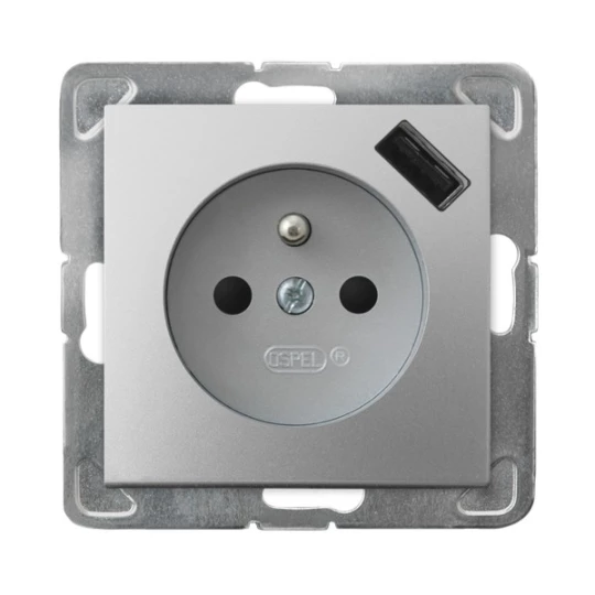IMPRESJA MODUŁ SREBRNY GNIAZDO 1X Z/U Z PRZESŁONAMI ZACISKI SPRĘŻYNOWE + ŁADOWARKA USB 16A 250V