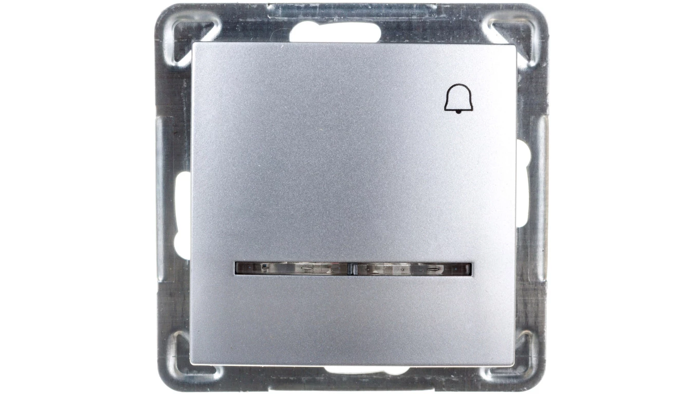 IMPRESJA MODUŁ SREBRNY PRZYCISK "DZWONEK" PODŚWIETLANY NIEBIESKI ZACISKI SPRĘŻYNOWE 10AX 250V