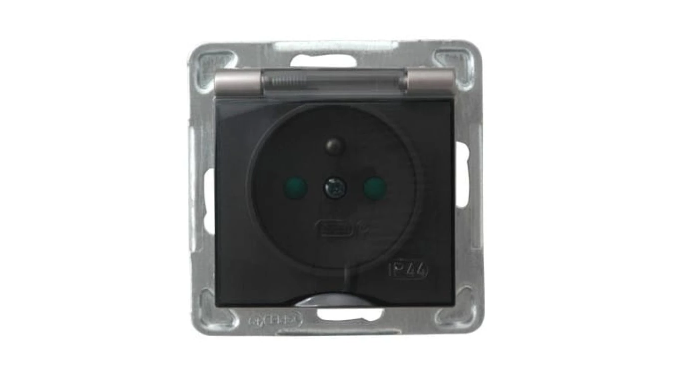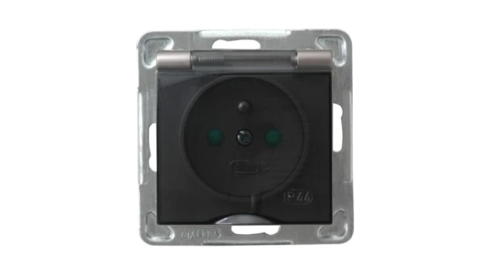IMPRESJA MODUŁ TYTAN GNIAZDO 1X Z/U Z KLAPKĄ DYMNĄ IP44 Z PRZESŁONAMI ZACISKI ŚRUBOWE 16A 250V