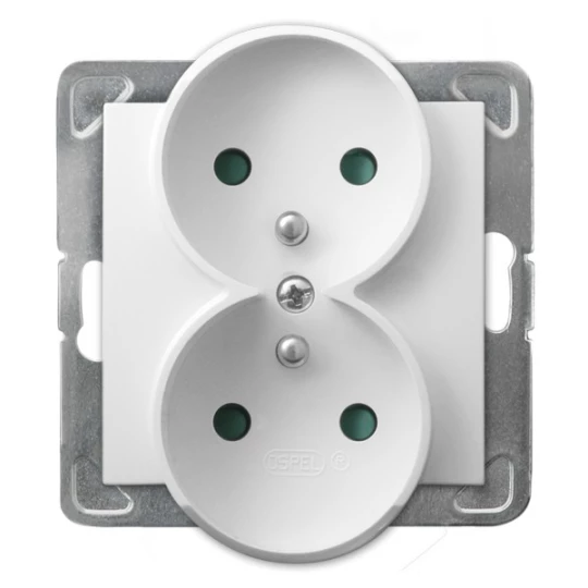 IMPRESJA PRESTIGE MODUŁ BIAŁY GNIAZDO 2X Z/U Z PRZESŁONAMI ZACISKI ŚRUBOWE 16A 250V