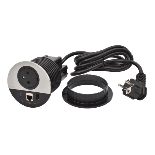 INCARA: DISQ 80 - 2P+Z / USB A+C / RJ45 - 2,0 M-METAL/CZARNY